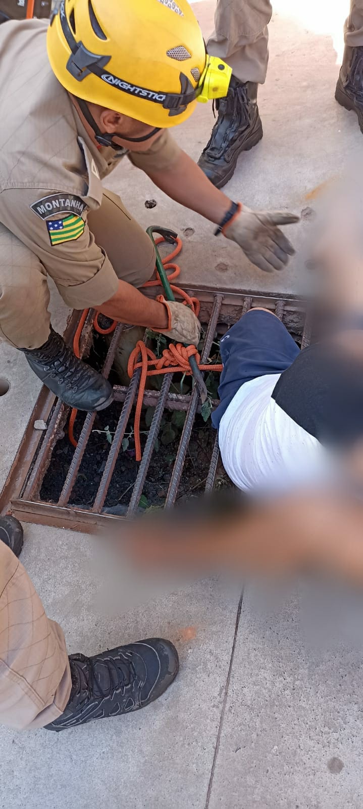 Militares do Corpo de Bombeiros resgataram um menino de oito anos que ficou com a perna presa na grade de um bueiro, em Anápolis. De acordo com a corporação, não foi necessário transporte ao hospital. O acidente aconteceu sábado (25) em um condomínio localizado na Avenida JK, região do Bairro Novo Jundiaí.