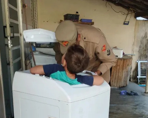 Uma criança, de 4 anos, foi resgatada pelo Corpo de Bombeiros após ficar presa dentro de uma máquina de lavar roupa. O episódio, para lá de inusitado, aconteceu no final de semana, na cidade de Posse, na região Nordeste de Goiás. Apesar do susto, o menino não teve ferimentos.