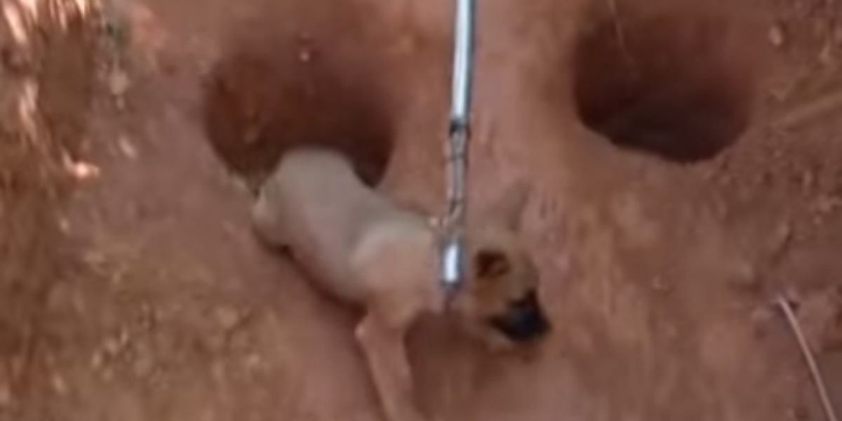Foi preciso a utilização de equipamento especial, chamado de cambão, para a retirada do filhote de cachorro do buraco.