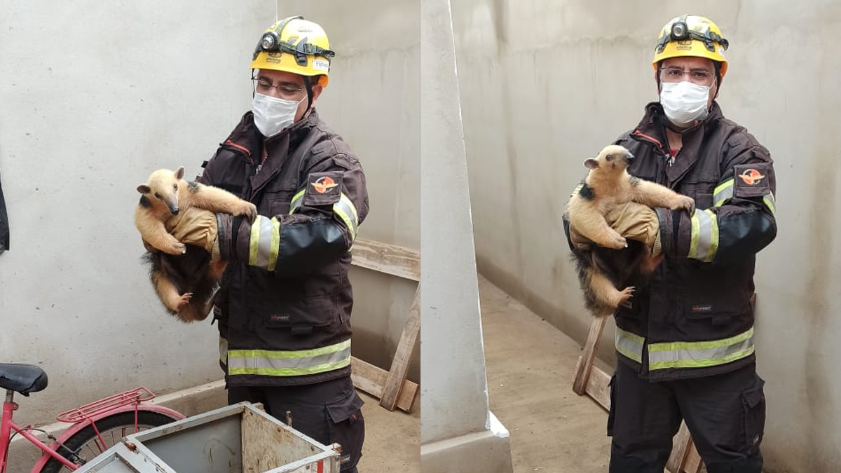 Bombeiros resgatam tamanduá-mirim em residência de Morrinhos