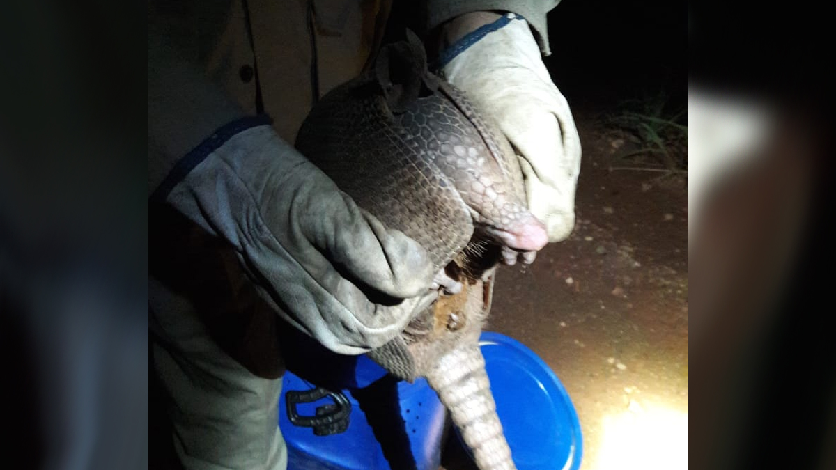Segundo a corporação, o animal estava aparentemente saudável. Após a captura, eles levaram o tatu ao habitat natural dele, uma região de mata próxima a cidade.