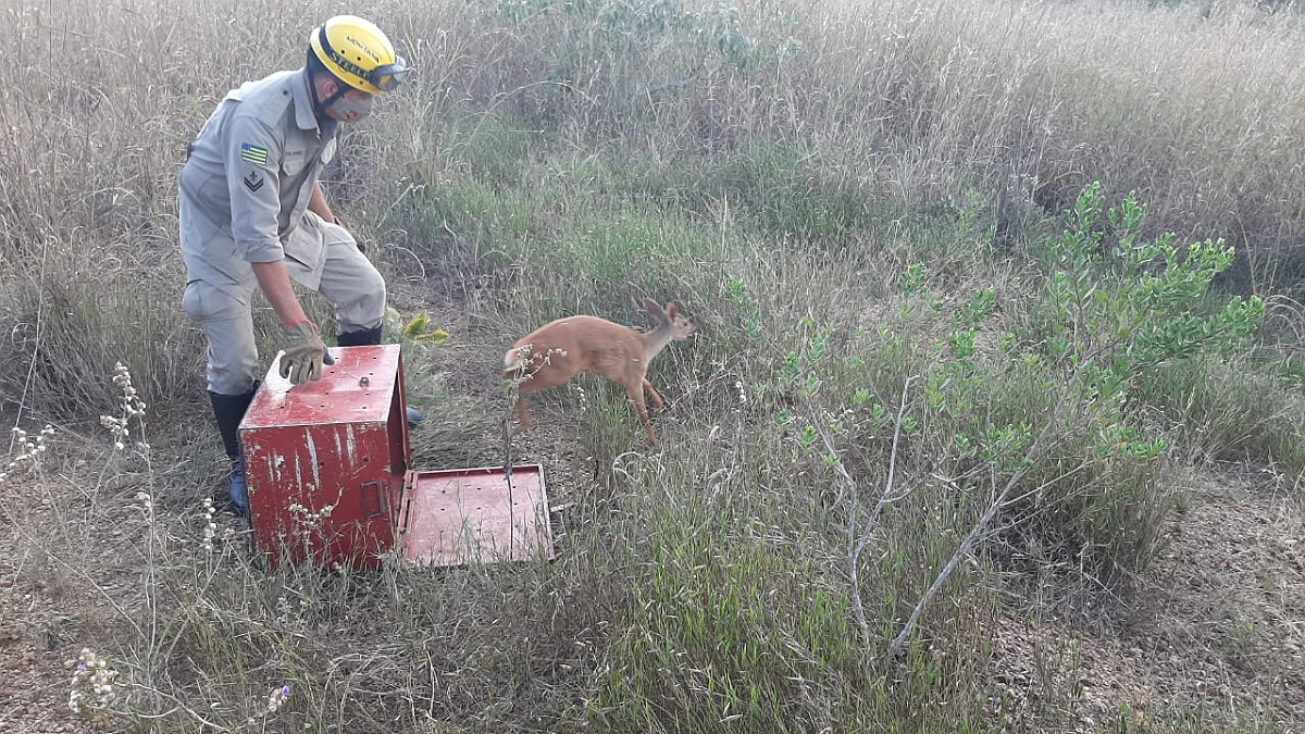 Bombeiros resgatam veado em Novo Gama (Foto: BMGO/ Divulgação)