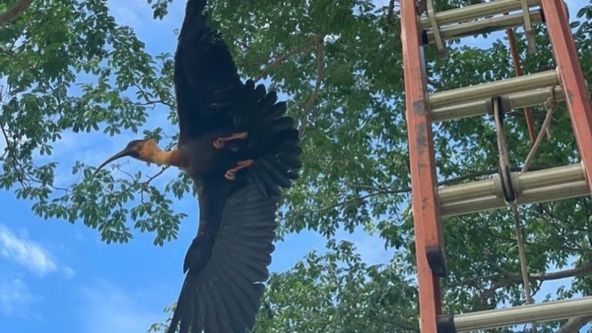 Segundo os bombeiros, as equipes se deslocaram até a Vila Promissão, onde a curicaca estava presa. A ave estava suspensa, com uma das asas presas na linha de pipa, que estava enrolada em um galho de árvore.