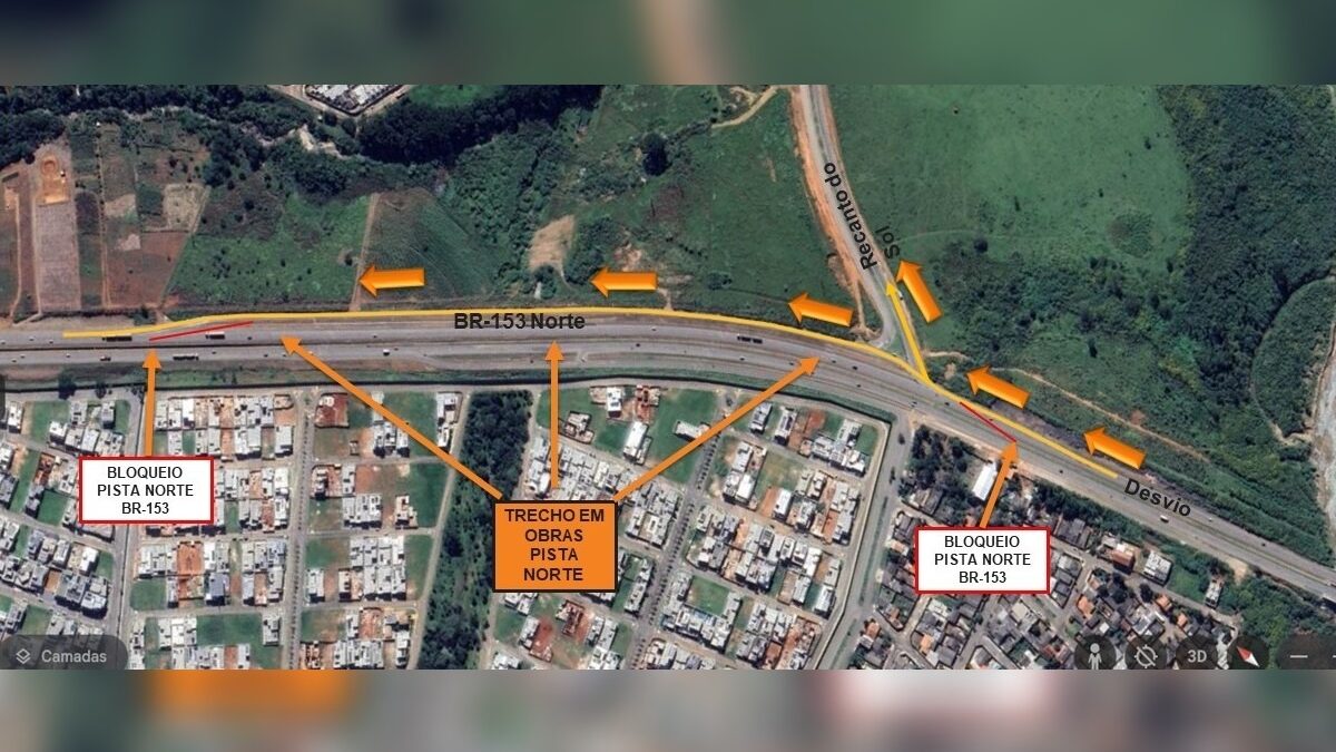A Concessionária Ecovias do Araguaia, responsável pela BR-153, informa que haverá um desvio próximo ao Recanto do Sol, no km 437, nesta terça-feira (12). O objetivo será realizar as obras do viaduto local, no perímetro urbano de Anápolis.