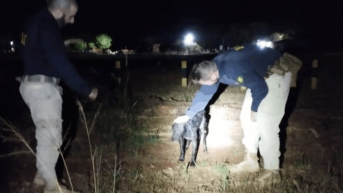 Em determinado momento, os policiais ouviram um choro de animal nas proximidades. A princípio, eles acreditaram que fosse por uma possível situação de maus-tratos e iniciaram as buscas. O cachorro foi encontrado dentro de uma represa de difícil acesso, já exausto e em risco de afogamento.