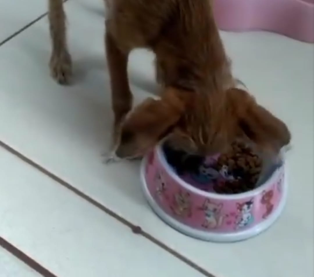 A moradora resgatou a cadela, que recebeu água e ração e depois foi acolhida pela ONG SOS Animais de Anápolis. Em um vídeo nas redes sociais da entidade, nota-se o desespero com o qual a cadela come a ração após ser resgatada.