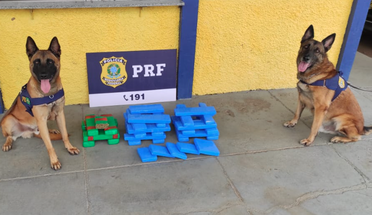 Os cães da PRF que farejaram a maconha se chamam Turco e Jambo. Veja foto deles abaixo: