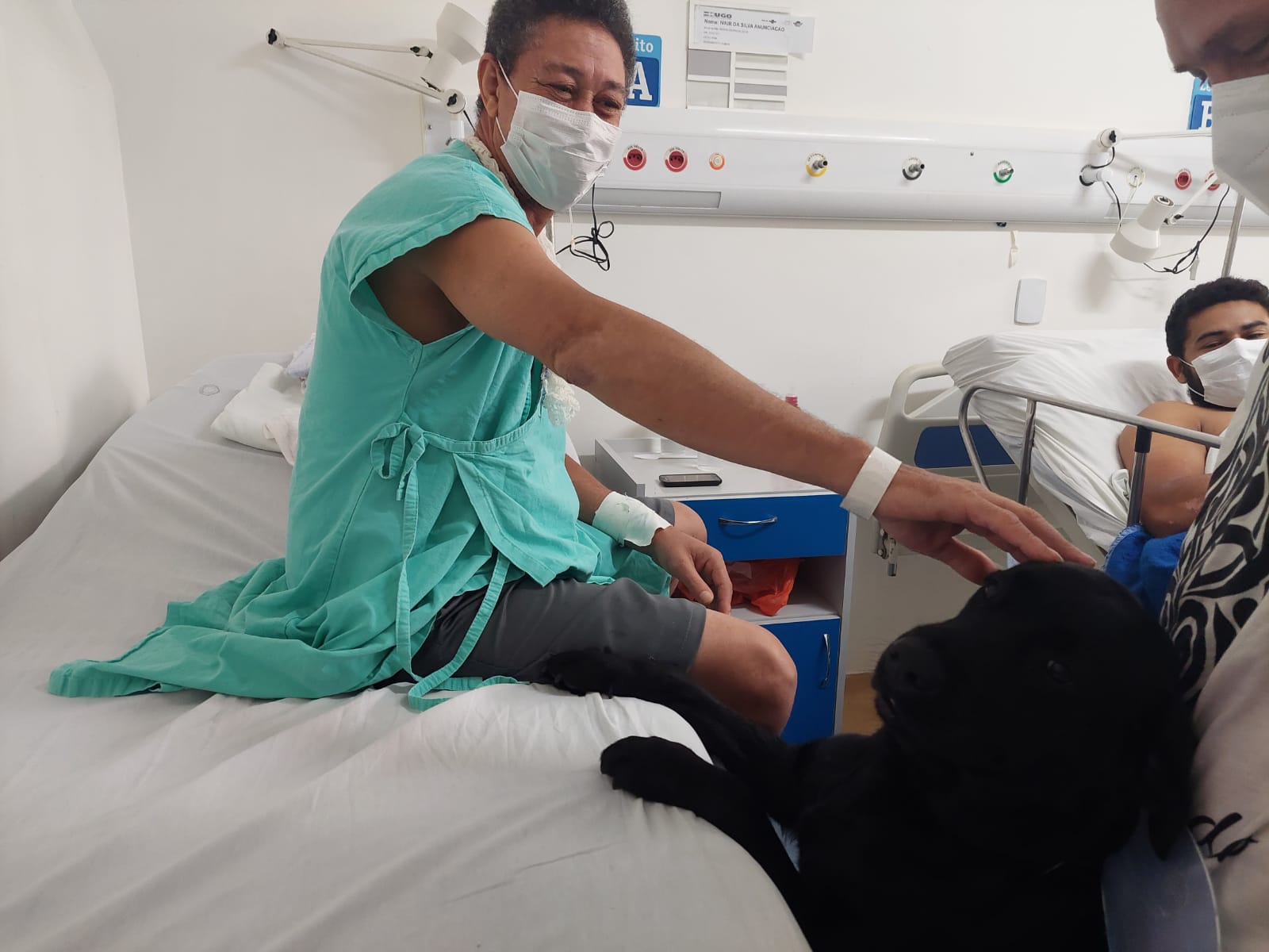 Os pacientes do hospital receberam a visita das cadelas foi recebida com emoção. “A gente fica aqui internado sozinha, triste. Ao ver as cadelinhas lembrei de um cachorro que eu tinha da mesma raça. Achei muito bom, fiquei feliz”, disse Irailma da Costa Silva, internada há 22 dias no Hugo.