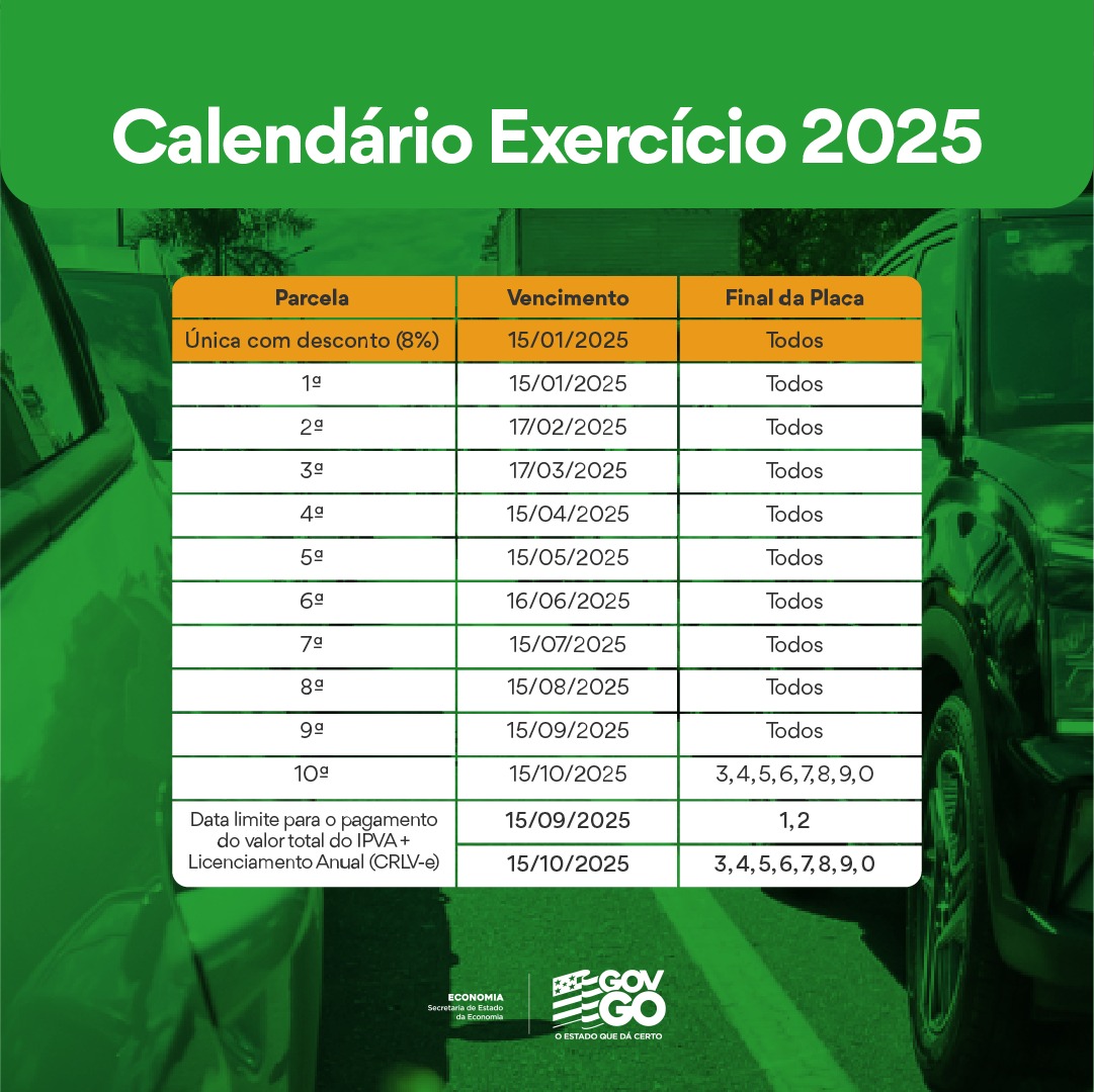 Calendário do IPVA 2025 em Goiás: veja as datas