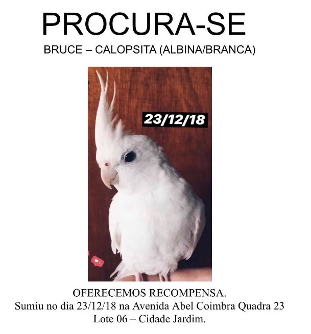 “A Bruce voou para a porta de casa, e enquanto o procurávamos nas árvores da avenida, esses homens desceram do seu carro e o pegaram. Peço para que compartilhem, para que nosso apelo chegue até alguém que conheça essas pessoas, e que eles tenham a sensibilidade e sensatez de me devolver Bruce em segurança”, informou Gabriella, dona da ave.