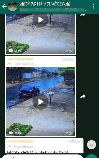 Em grupo de conversa de moradores dos três bairros, fotos e vídeos dos ladrões são compartilhados. Vítima diz que pela filmagem, homem “ficou mexendo em todos os portões da rua”.