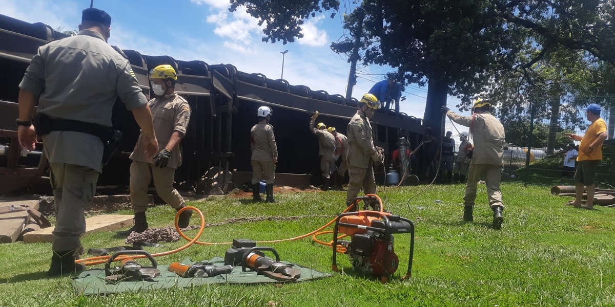 Ainda segundo a corporação, o caminhão transportava mais de 50 bovinos. O condutor do veículo perdeu o controle ao fazer uma curva em uma rotatória nas proximidades do Hospital de Urgências Governador Otávio Lage (Hugol) e o automóvel acabou tombando.