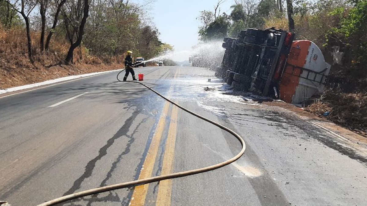 Um caminhão tombou em Uruaçu carregado com álcool etílico no sábado (18). O acidente ocorreu no quilômetro 208 da BR-153, zona rural do município, e deixou o trecho da rodovia interditado.