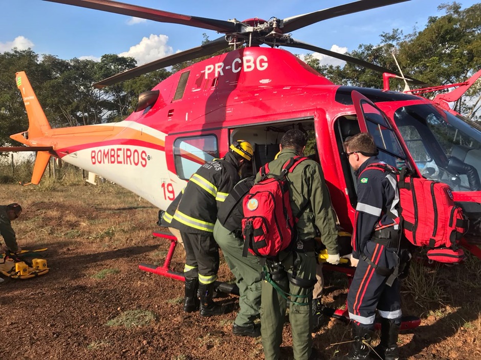 Vítima, de 35 anos, ficou gravemente ferida foi transportada pelo helicóptero do Corpo de Bombeiros para receber atendimento no Hugo, em Goiânia