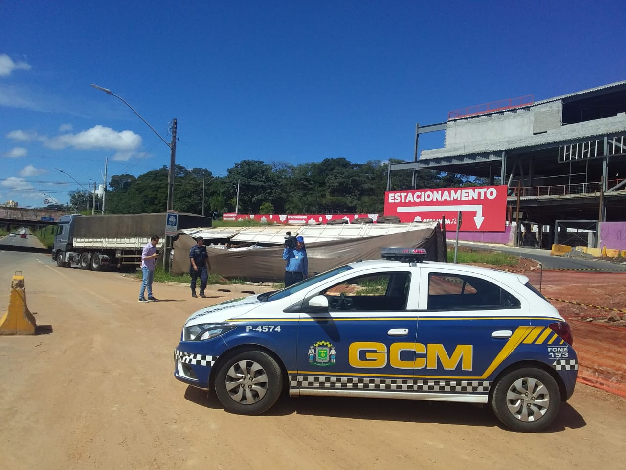 Caminhoneiro é assaltado e crime só termina após veículo tombar, em Goiânia