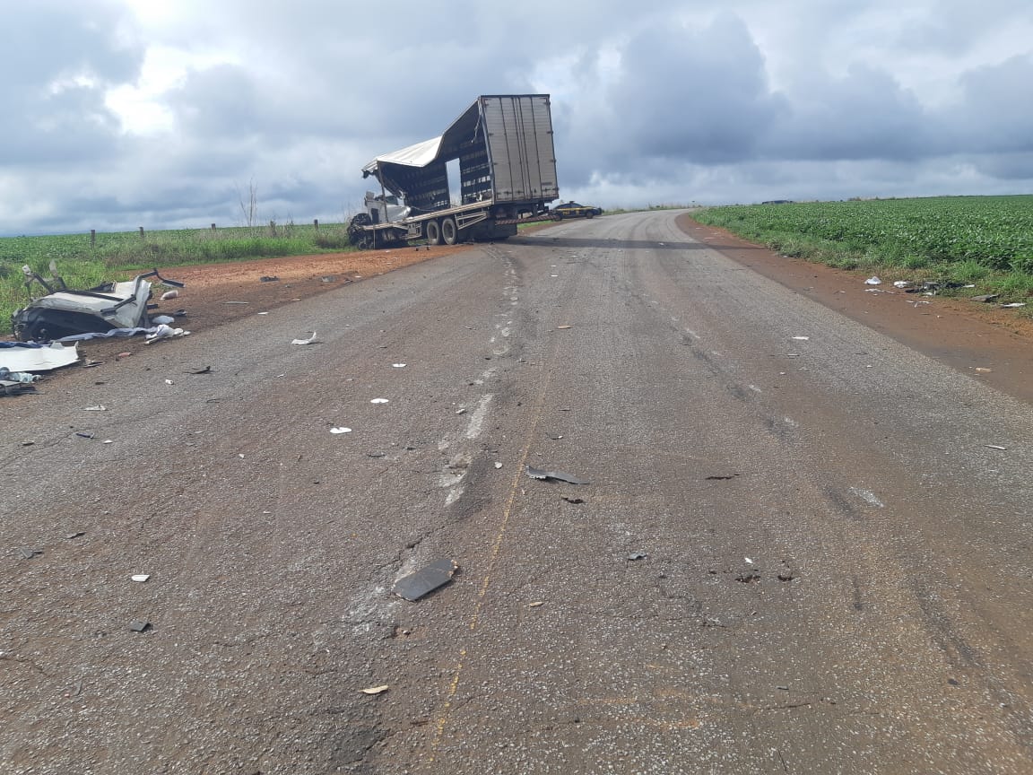 O caminhão baú conduzido pela vítima morta ficou completamente destruído e destroços de ambos os veículos ficaram espalhados pelo trecho da estrada. Devido ao impacto, o caminhão bitrem enveredou por uma plantação que margeia a rodovia.