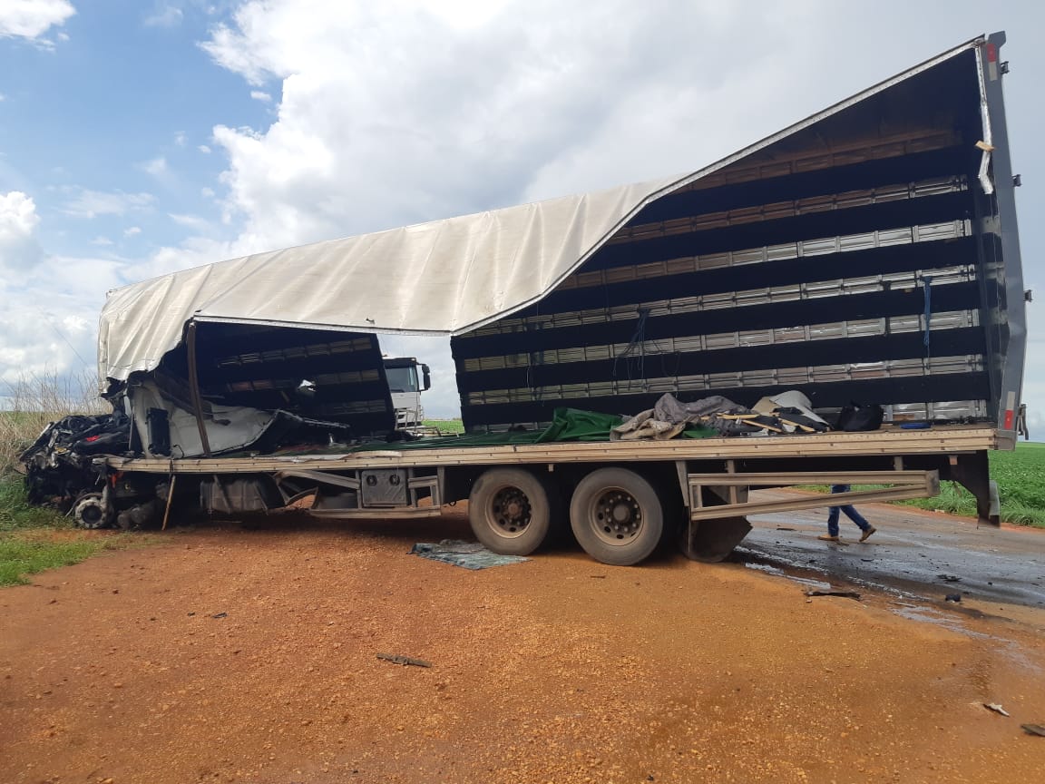 O caminhão baú conduzido pela vítima morta ficou completamente destruído e destroços de ambos os veículos ficaram espalhados pelo trecho da estrada. Devido ao impacto, o caminhão bitrem enveredou por uma plantação que margeia a rodovia.