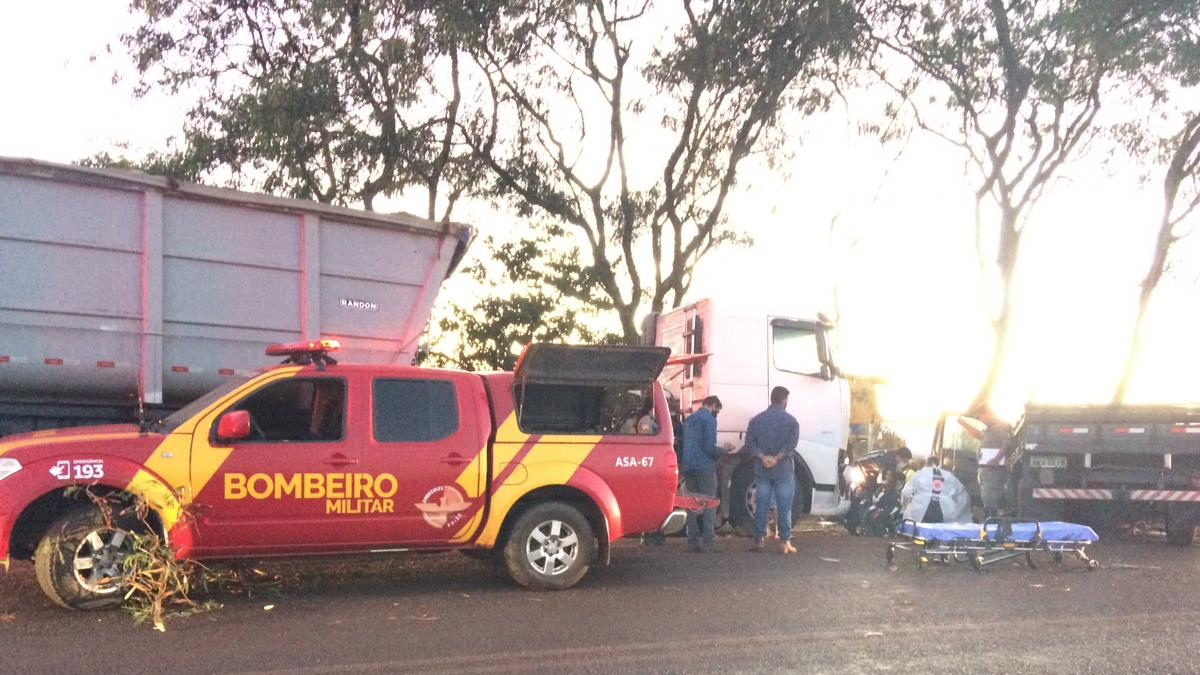 Testemunhas informaram aos bombeiros que o motorista se assustou com uma carreta, que passou muito perto da caminhonete, fez um movimento brusco no volante e isto teria ocasionado o acidente. O Corpo de Bombeiros esteve no local por volta das 5h30. Com a ajuda de um equipamento hidráulico, removeu a vítima das ferragens. O passageiro estava preso pelos membros inferiores.