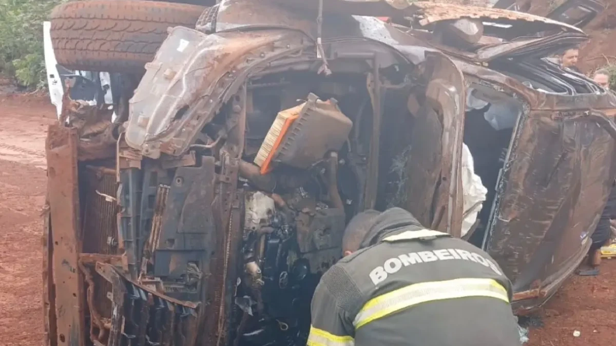 Caminhonete capota e deixa vítimas presas às ferragens na BR-452, em Itumbiara