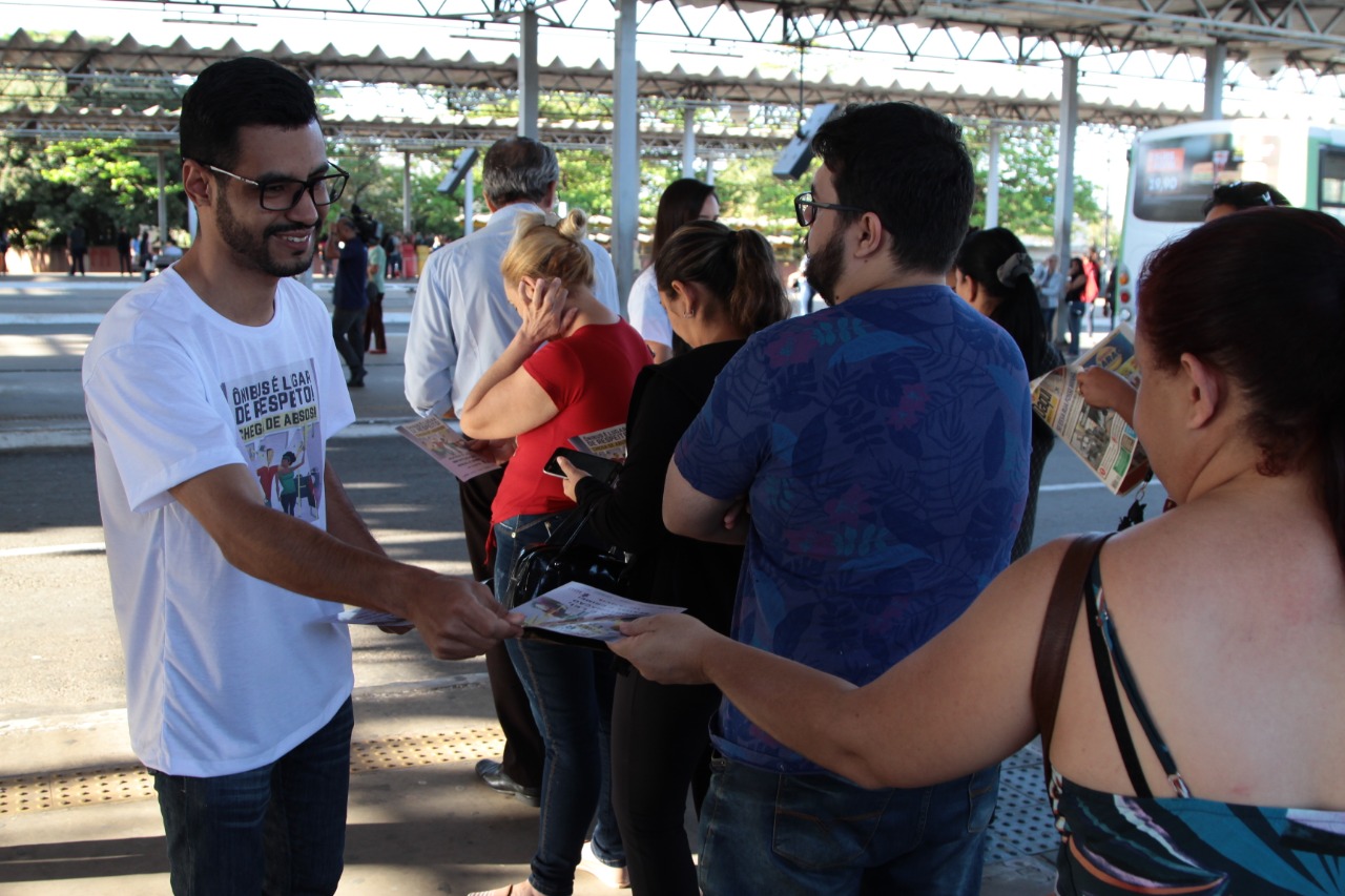 A Prefeitura de Aparecida de Goiânia lançou, na manhã desta quarta-feira (28), uma campanha de conscientização contra o assédio sexual dentro de ônibus do transporte coletivo. Cartazes foram anexados em mil veículos. Além disso, também foi feita uma blitz educativa com entrega de panfletos da campanha aos passageiros do Terminal Cruzeiro.