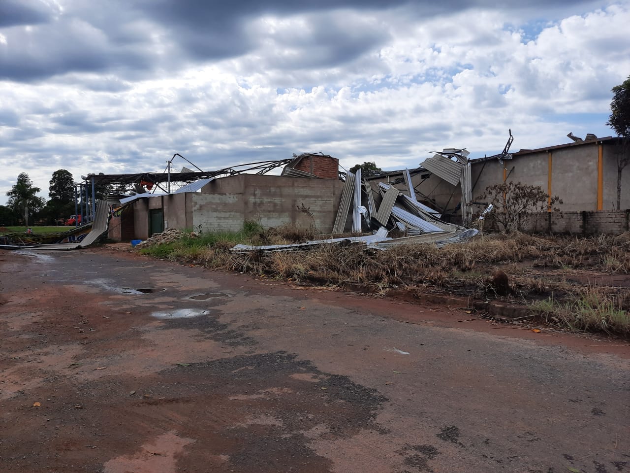 As fortes rajadas de vento levaram telhas, derrubaram muros e árvores e chegaram a danificar a fiação da distribuição elétrica do município. Ainda não há registro de feridos.