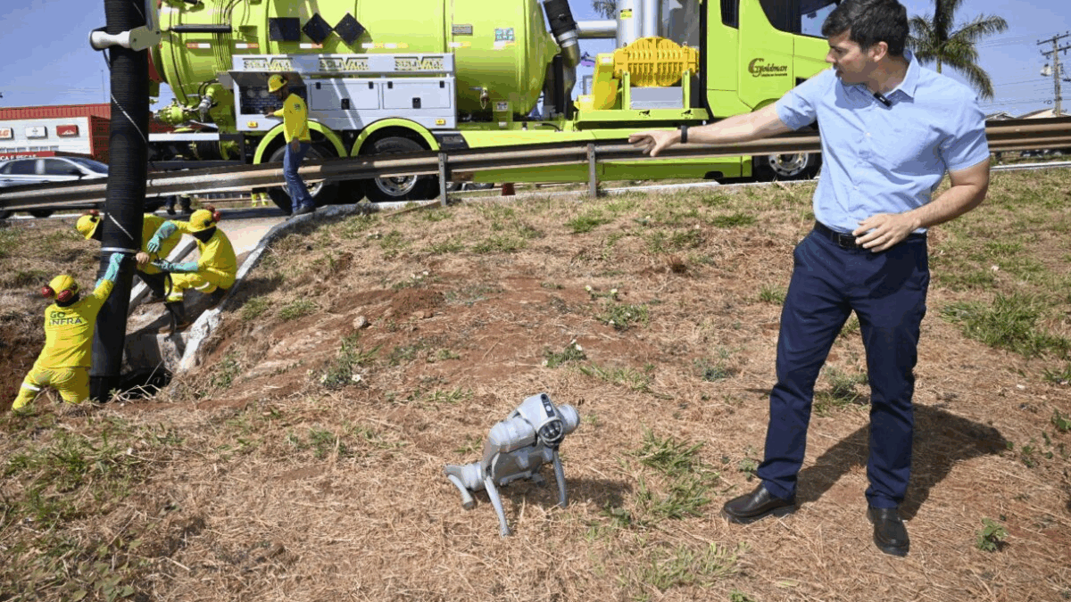 “Primeiro, é feita uma sucção do assoreamento do dispositivo de drenagem e, após ser limpo e desobstruído, entrará em campo o Robodog, que fará um relatório de condição estrutural, apontando exatamente onde pode haver uma fissura, um rompimento que demande uma intervenção da Goinfra para ir salvar esse dispositivo de drenagem”, afirmou Pedro Sales, presidente da Goinfra.