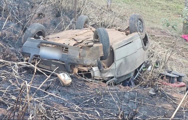 Carro saiu da pista, capotou e ocupantes foram arremessados para fora do veículo