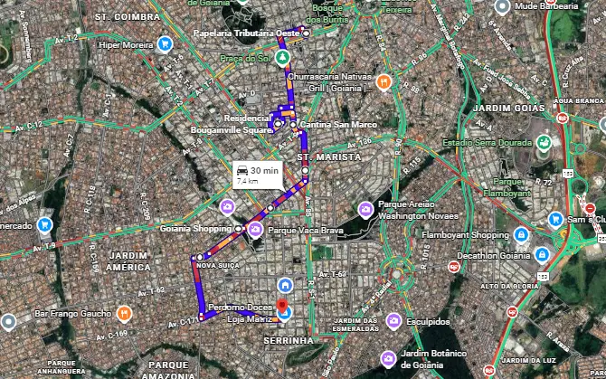 Caravana da Coca sai da praça Tamandaré, no setor Oeste, passa em frente aos shoppings Bouganville e Goiânia Shopping e fecha trajeto na Serrinha