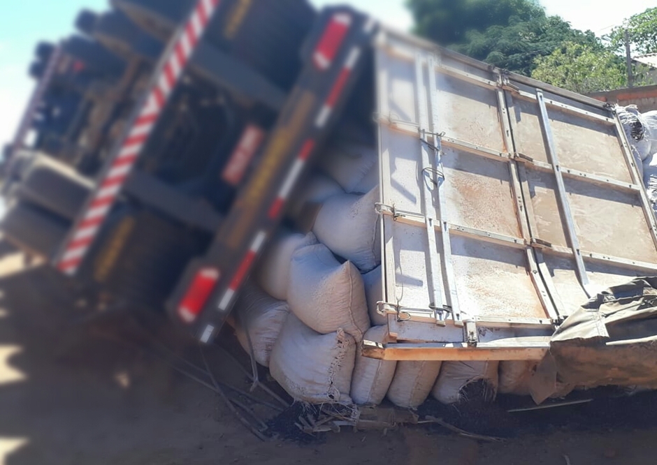 Carreta carregada com grãos de cacau foi roubada em Tocantins e se acidentou na BR-080, próximo ao povoado de Trajanópolis