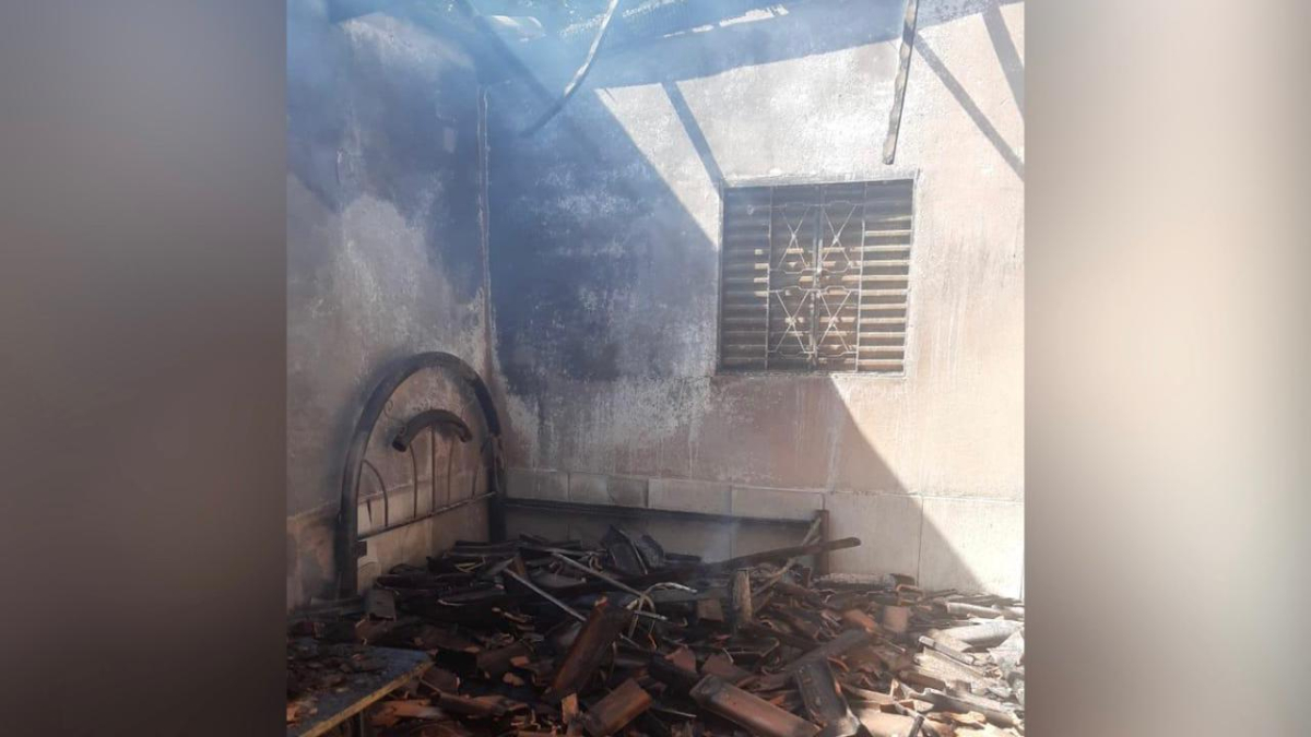 Vizinhos notaram o fogo e começaram a apagar as chamas na casa. Estrutura da residência foi danificada e terá de ser demolida