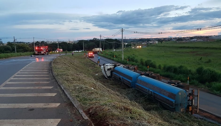 Uma carreta carregada de etanol tombou no final da tarde desta terça-feira (21) quando trafegava no Anel Viário, no Bairro Santa Rita, em Goiânia. Com o acidente, o trânsito ficou interditado no local.