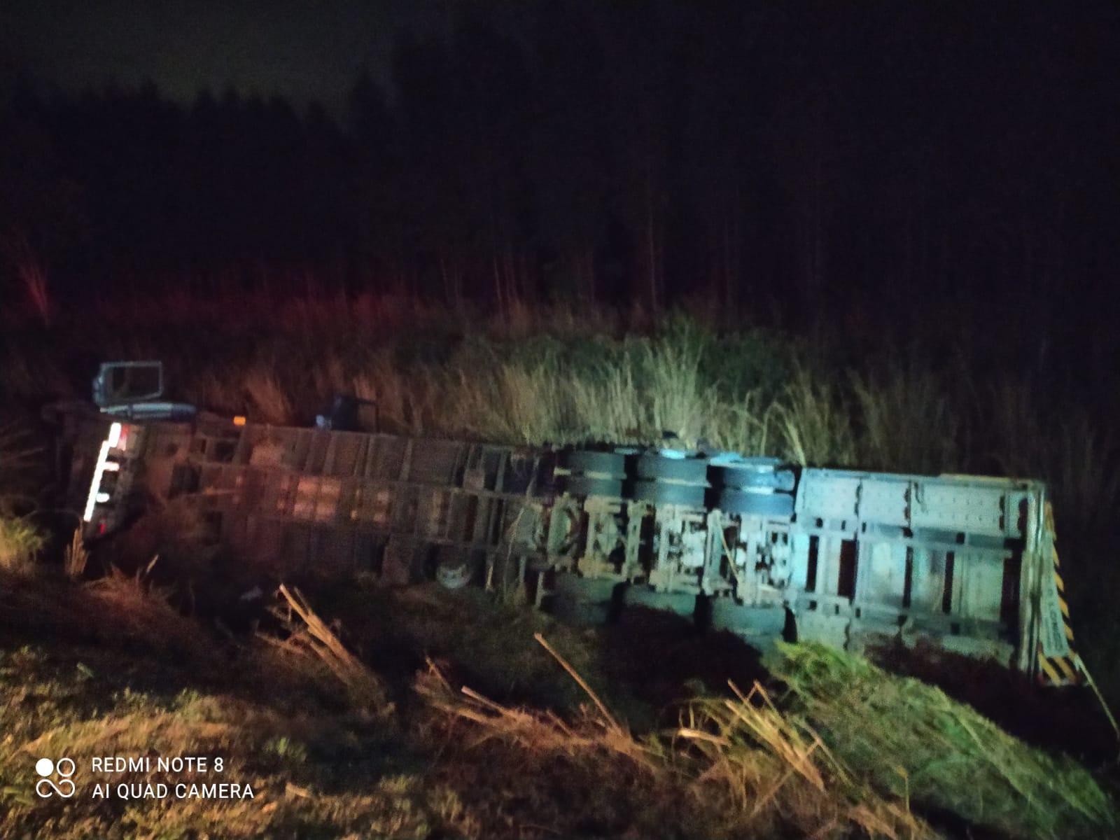 Carreta cegonha tomba e deixa 10 feridos na BR-050, em Cristalina