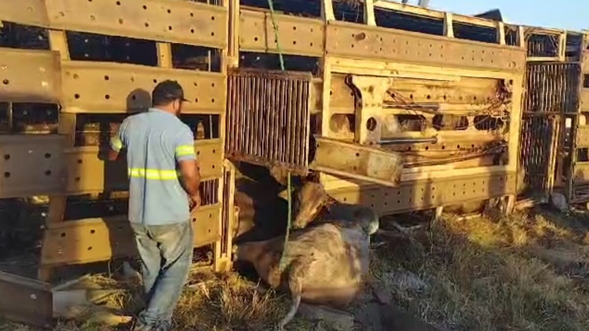 Cerca de dez animais também ficaram soltos e fugiram. Alguns deles se feriram, mas ainda não há detalhes sobre essa questão ou em relação a dinâmica do acidente. O condutor não se machucou.