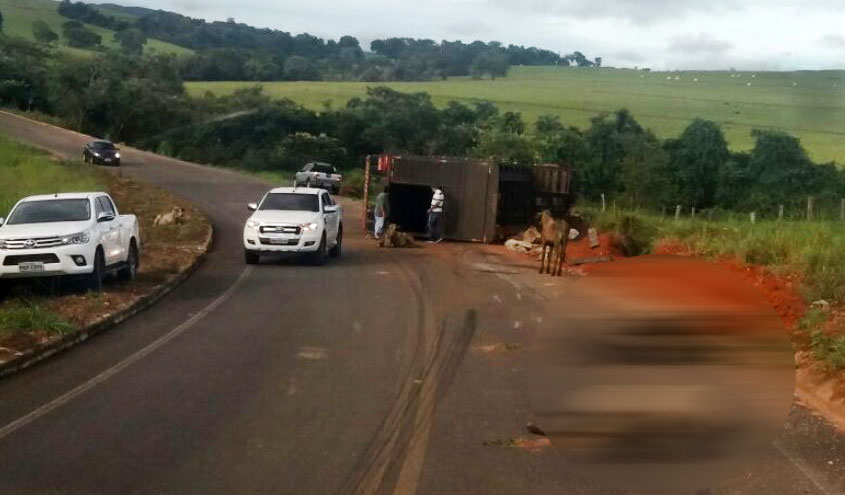 Ainda pela manhã, motoristas que passavam pelo local registraram cabeças de gado mortas na pista e o caminhão tombado fora da rodovia: