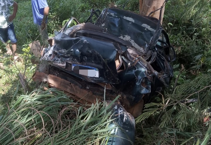 Imagens mostram que o veículo ficou totalmente destruído com o impacto da batida.