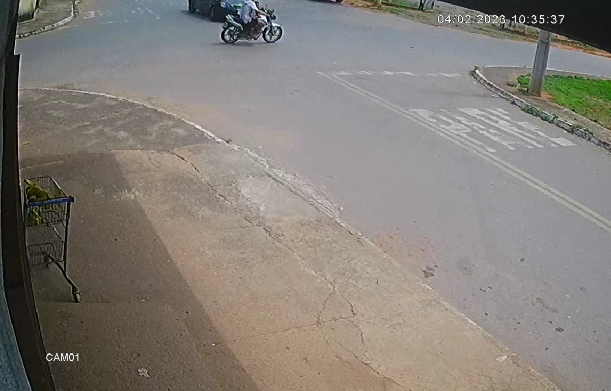 Um motociclista de 22 anos e seu filho de 3 anos foram atingidos por um carro em Senador Canedo, no último sábado (4). Um vídeo mostra o momento do choque, que acontece em um cruzamento do setor Monte Azul e arremessa as vítimas.