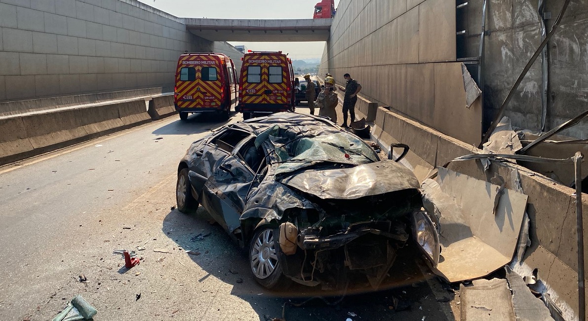 Carro cai de viaduto na Perimetral Norte e motorista fica em estado grave