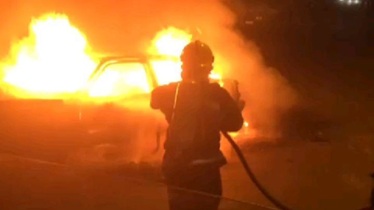 O impacto provocou um incêndio com chamas altas, que foram controladas pelo Corpo de Bombeiros