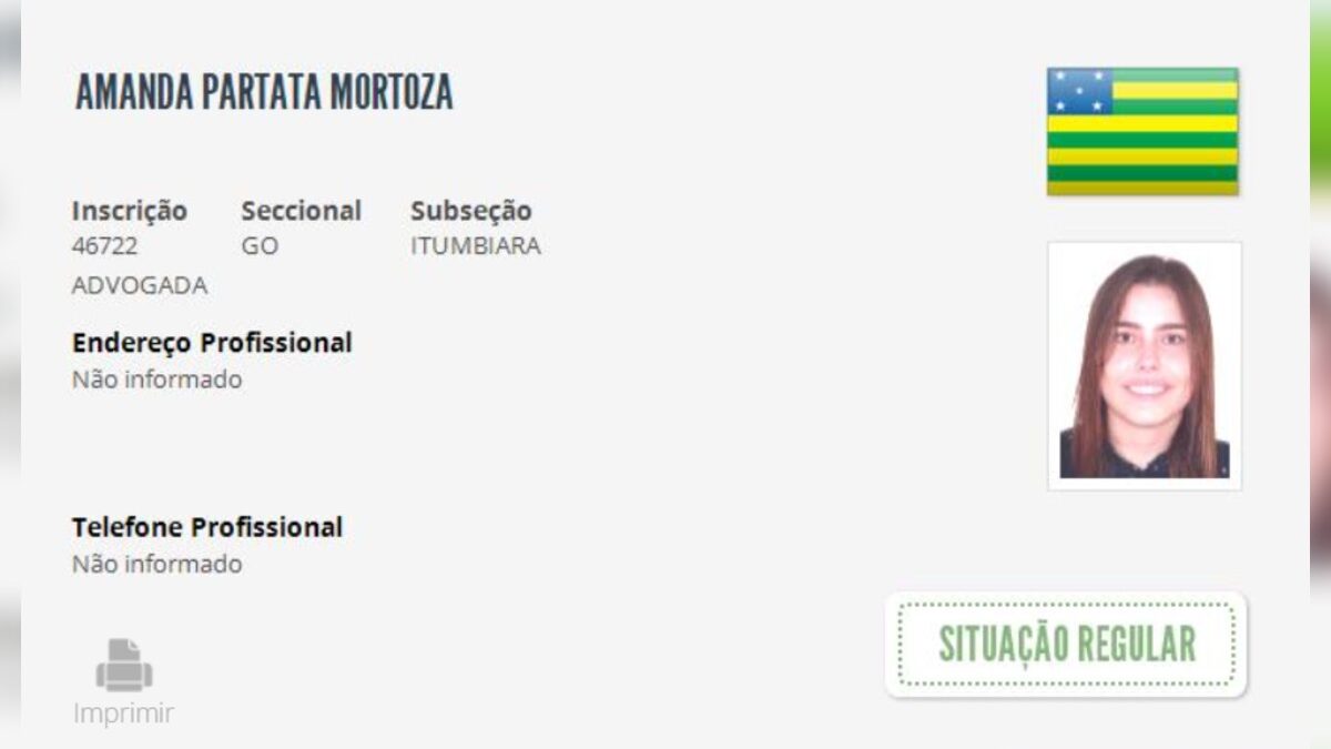 Carteira da OAB de Amanda Partata está regular, conforme CNA