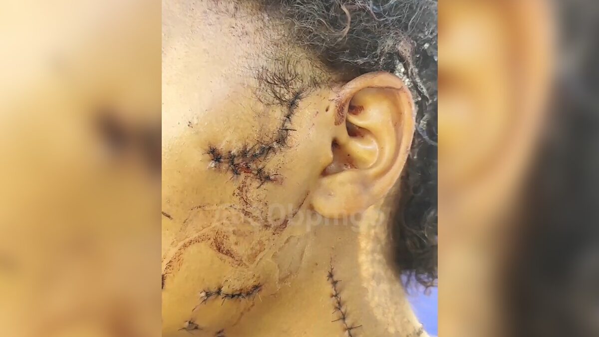 Menina com rosto rasgado em Aparecida (Foto: Reprodução)