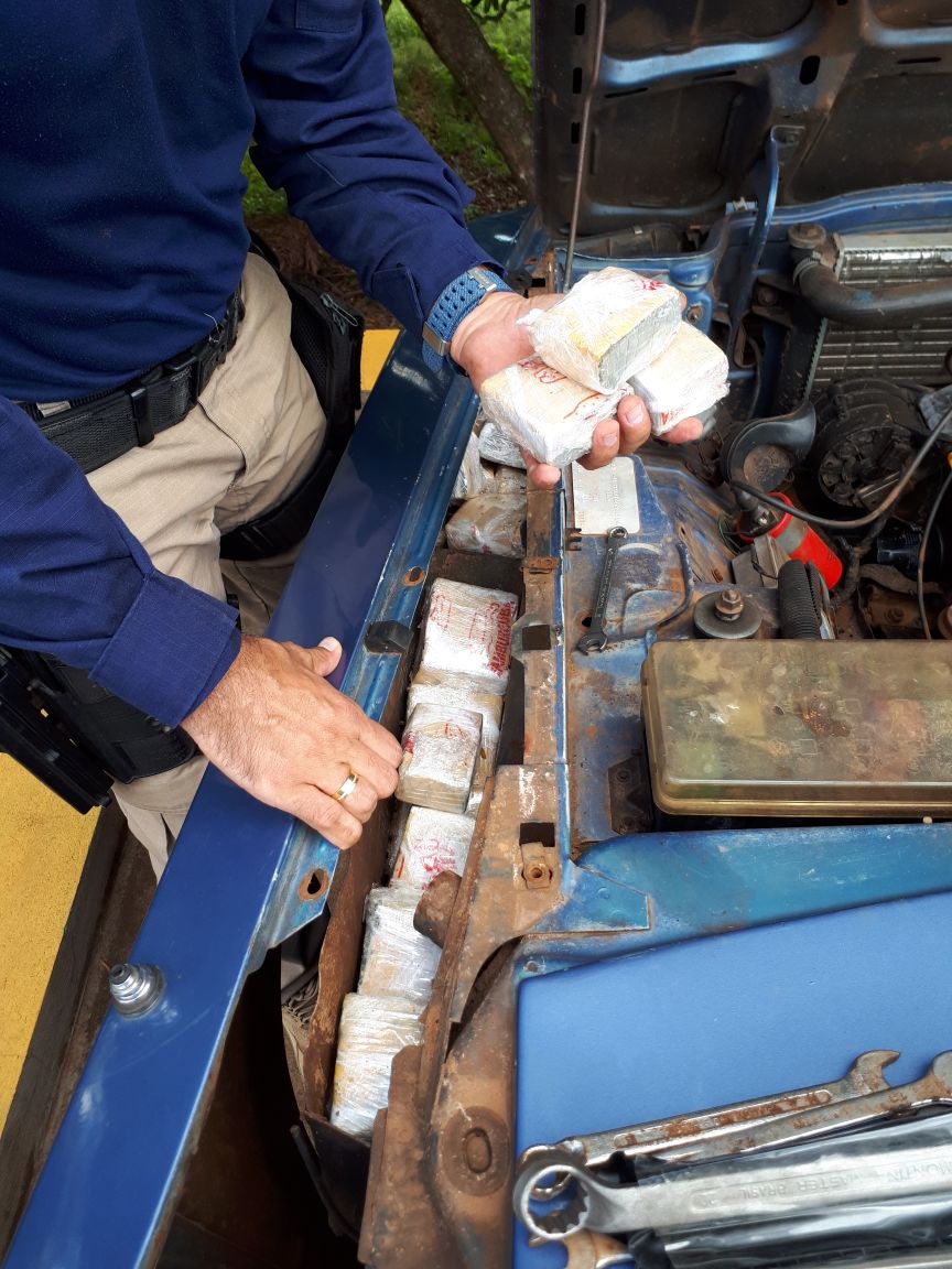 Segundo a PRF, os agentes fiscalizaram um Ford/ Corcel com placa de Campo Grande (MS) e notaram um certo nervosismo e informações contraditórias do casal. O veículo foi encaminhado para o pátio da corporação e foram encontrados dois compartimentos ocultos no paralamas do veículo.