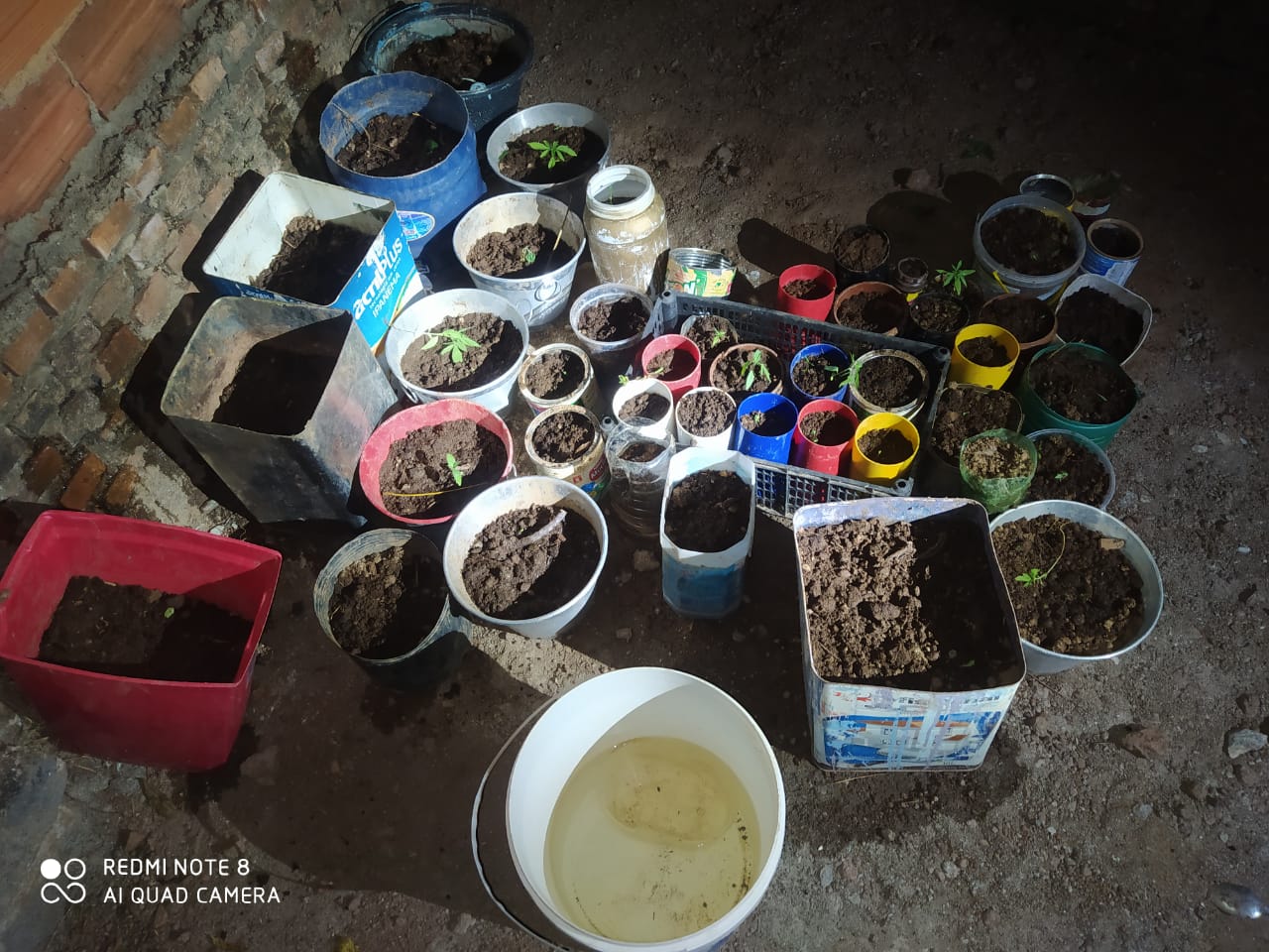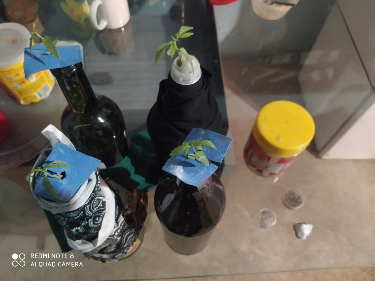 Dentro da casa, os policiais encontraram aproximadamente 50 pés de maconha, quatro garrafas com mudas de maconha cultivadas de forma hidropônica e dois recipientes com sementes. Além disso, havia duas porções da droga com o casal.