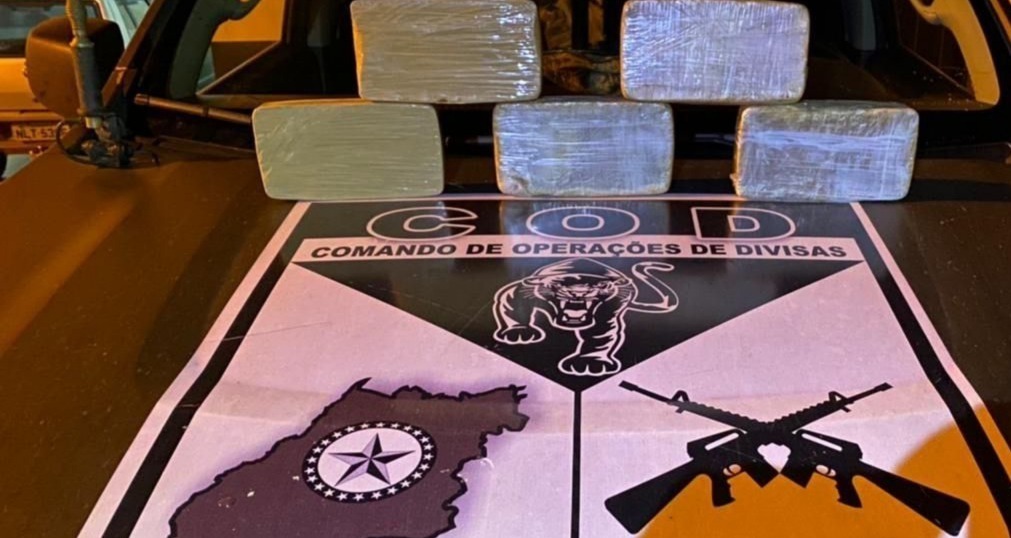 O flagrante foi feito por policiais do Comando de Operações de Divisas (COD). Segundo a corporação, o homem e a mulher levaram cerca de 5 kg de pasta base de cocaína para Goiânia.