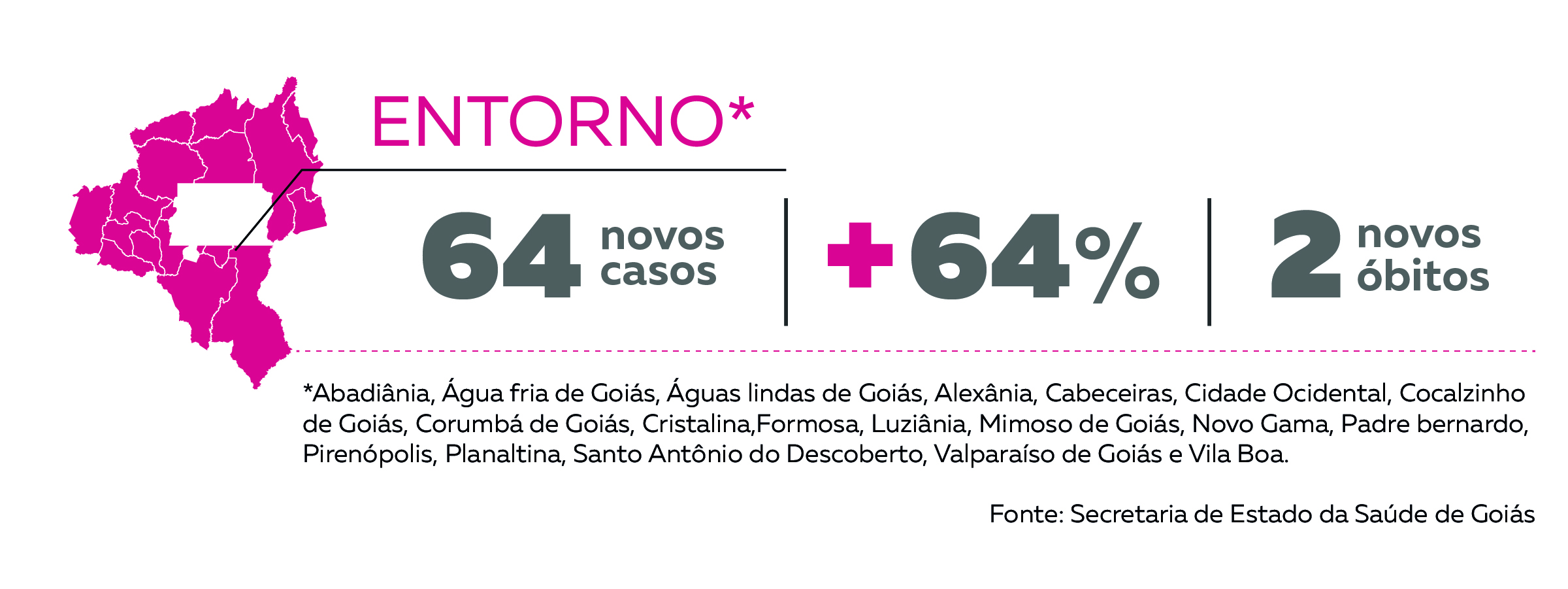 A cidade que mais teve confirmações de infecções pelo coronavírus foi Valparaíso de Goiás. Lá o número de casos saiu de 25 para 48. Foram 23 casos em uma semana, um aumento de 92%.