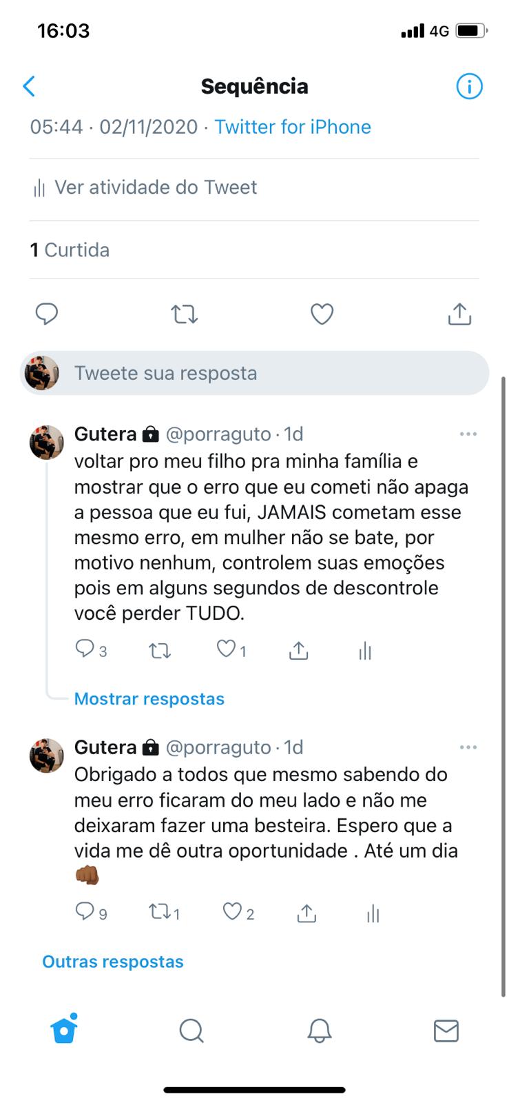 Além disso, ele alegou que está a disposição da Justiça “para pagar o erro que cometi.” O rapaz pontuou que “não tem perdão e nem justificativa” pelo o que fez. Em outro post, ele alega que “não é um mostro” e contou que está em um país vizinho e que não está foragido. Segundo ele, viajou para preservar a sua segurança.