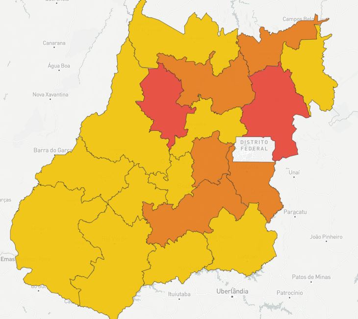 A atualização do mapa na sexta-feira (1) mostra que Goiás tem duas regiões em situação de calamidade, cinco em situação crítica e 11 em situação de alerta. No mapa da semana anterior, eram duas em calamidade, duas em situação crítica e 14 em alerta. No total, são 18 regiões avaliadas.