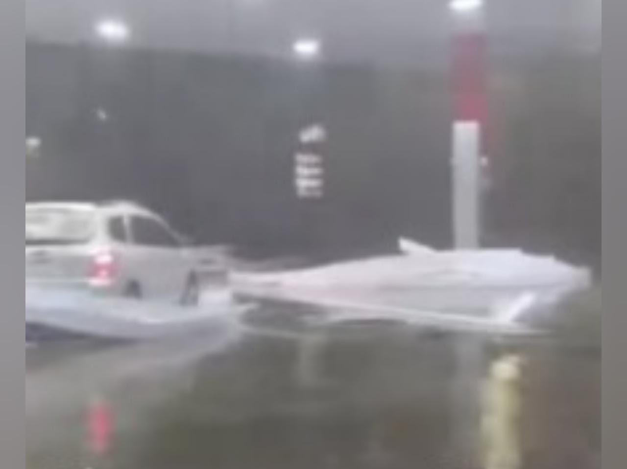 Nos registros em Campinaçu é possível ver a chuva acompanhada de forte ventania. Nas imagens, vê-se parte do teto de um posto de combustíveis no chão, nas proximidades de carros e pessoas que tentam se esconder das chuvas.