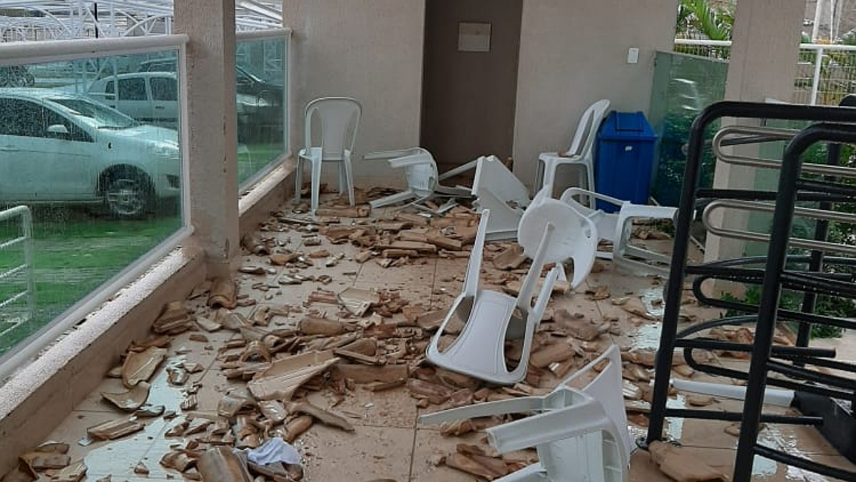 A tempestade que caiu na tarde desta segunda-feira (14) causou estragos em Aparecida de Goiânia. Há registros de quedas de árvores, muros, além de um telhado destruído em um condomínio no Parque América. A Defesa Civil do município não registrou nenhuma vítima. Em alguns pontos choveu mais de 50 milímetros (mm).