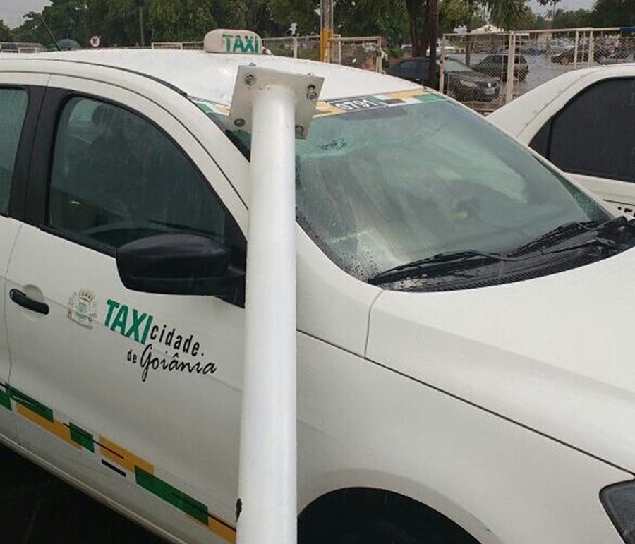 Pilastra caiu em cima de táxi e danificou o veículo. (Foto: Leitor/ Mais Goiás)