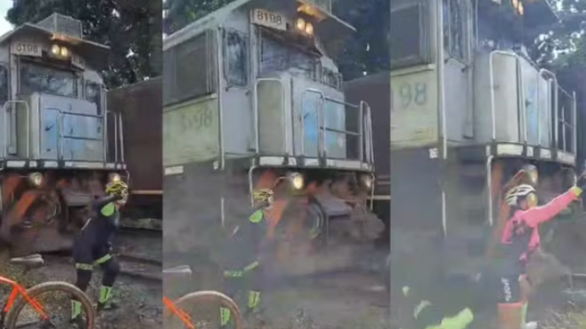 O vídeo foi gravado por uma das integrantes do grupo que fazia trilha de bicicleta. Os bombeiros informaram que, durante o atendimento, a mulher disse que não percebeu a proximidade em que estava da linha do trem.
